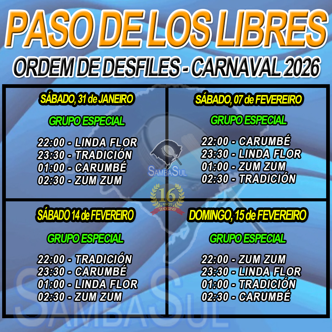 ORDEM DE DESFILES - CARNAVAL PASO DE LOS LIBRES 2026