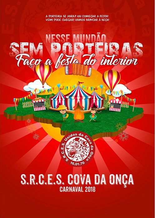 CONHEÇA AQUI a logo do enredo 2018 da Cova da Onça A Cova da Onça divulgou a logo oficial do seu enredo para o Carnaval 2018: "Nesse Mundão Sem Porteiras, Faço a Festa do Interior", que será desenvolvido pela Comissão de Carnaval da escola. Confira: