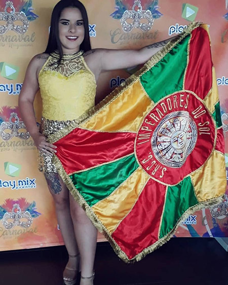 Meu primeiro desfile foi com 11 anos, eu fazia parte de um grupo de dança e teatro da escola e fomos convidados para fazer um trabalho voluntário, que seria uma comissão de frente de uma escola do grupo de acesso. Desfilamos no ano de 2012 e depois voltei para a avenida em 2015 já na Imperadores do Sol, os primeiros 3 anos desfilei em alas, no ano passado passei para a coordenadora de ala e esse ano irei representar a escola na escolha da corte do carnaval 2019.