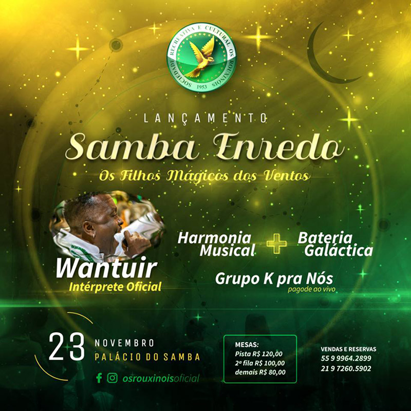 Os Rouxinóis lança seu Samba-Enredo para o Carnaval 2019 no dia 23 de novembro, sexta-feira, a partir das 22h no Palácio do Samba. A escola busca seu 31º título com o enredo "Os Filhos Mágicos do Vento".