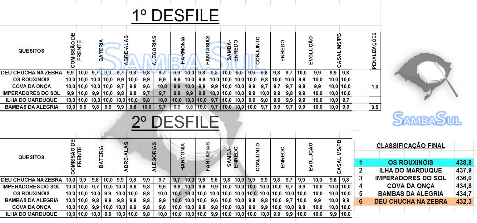 Os Rouxinóis é a campeã do Carnaval de Uruguaiana 2019. A escola trouxe o enredo Os Filhos Mágicos do Vento, assinado por Davi Gbanna e Severo Luzardo. É o 31º título da verde-e-branco, comandada por Jorge Quirino. A Ilha do Marduque conquistou o vice-campeonato, seguida pela Imperadores do Sol, Cova da Onça e Bambas da Alegria. A Deu Chucha na zebra acabou sendo rebaixada ao Acesso em 2020. O Império Serrano venceu o Grupo de Acesso e desfilará no Grupo Especial em 2020.