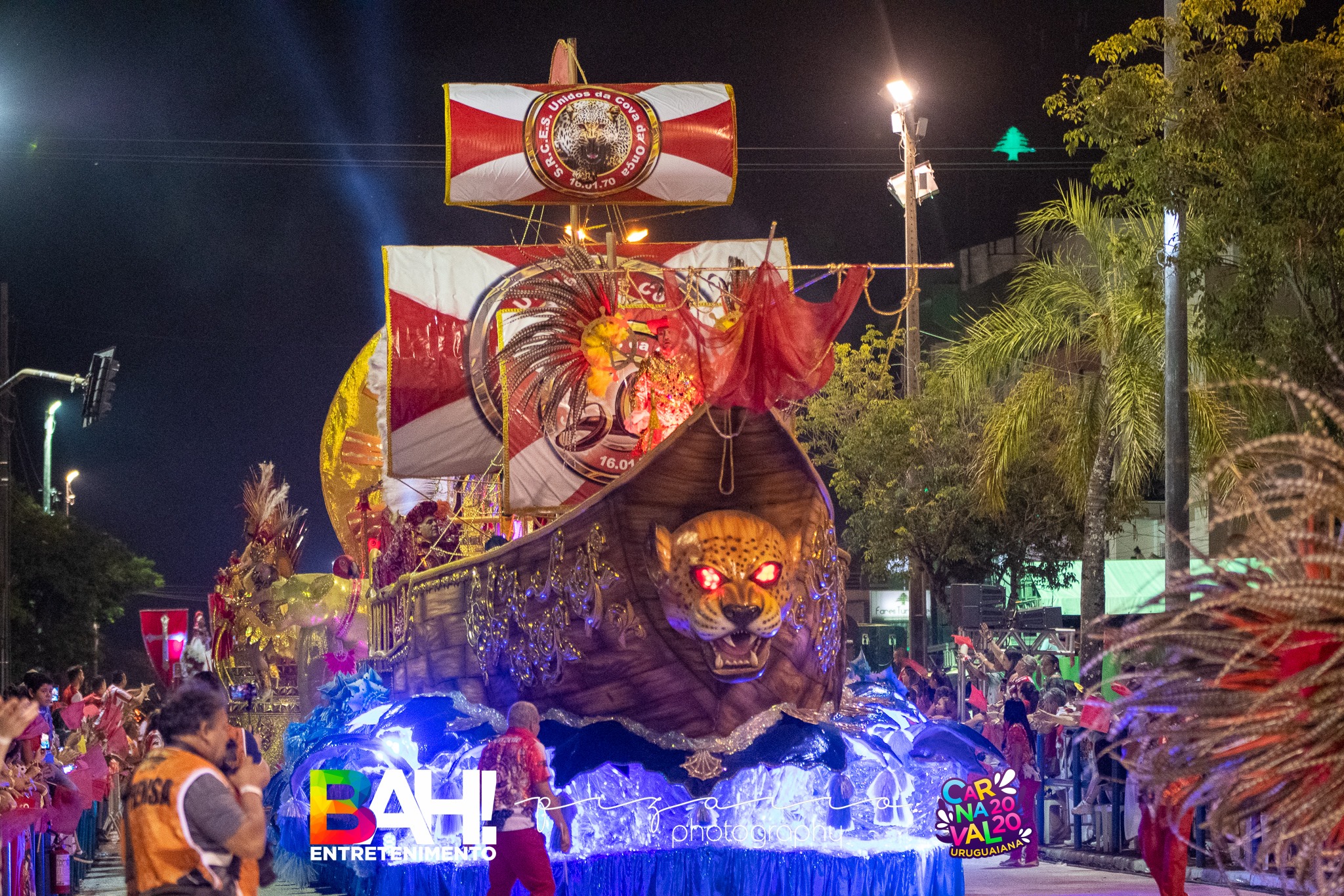 A Unidos da Cova da Onça é a grande campeã do Carnaval de Uruguaiana 2020! A vermelho-e-branco trouxe o enredo "Sob a Magia do Tempo - 50 Tons de Cova" do carnavalesco Guaracy Feijó. A escola contou a história dos seus 50 anos através da visão do mágico Kronus.