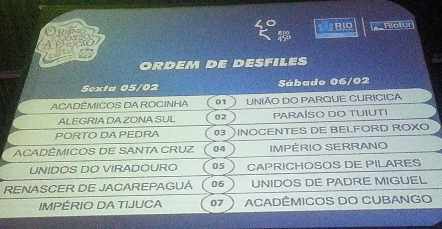 Ocorreu na noite desta segunda-feira (04), na quadra da São Clemente, o sorteio da Ordem de Desfiles das escolas da Série A do carnaval carioca para 2016. O evento foi realizado pela Liga das Escolas de Samba do Rio de Janeiro (LIERJ) e contou com a participação de todas as 14 agremiações que compõem o grupo.