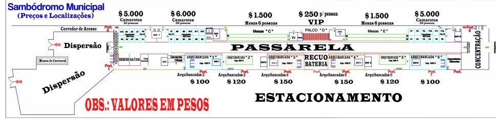 Veja os valores e as localizações no Sambódromo de Paso de Los Libres: